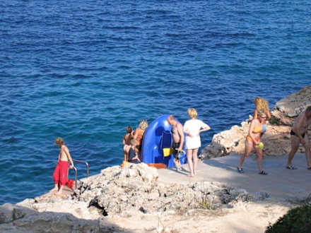 Am Hotel befindet sich kein direkter Strand mit Zugang zum Meer. Kleiner Felsvorsprung mit Badeplateau, 2 sehr rutschige Leitern zum ein- und aussteigen.