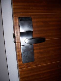 SchließanlageSchließanlage der Tür von außen, Kartensystem sprich man hat sowas wie eine Scheckkarte als Schlüssel