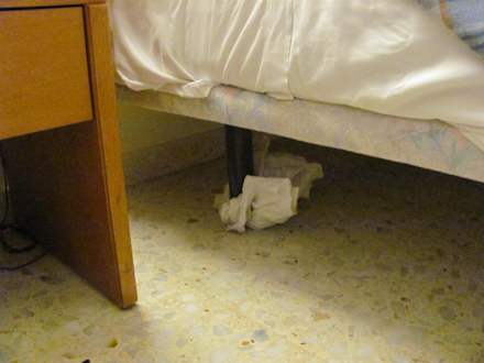 Rolle abgebrochen am "Schaukelbett"wurde vom Zimmermädchen professionell durch ein zerknülltes Bettlaken behoben.