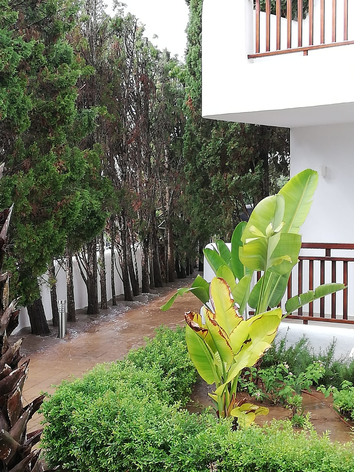 Zugang zu den Apartments bei einem "Wolkenbruch"