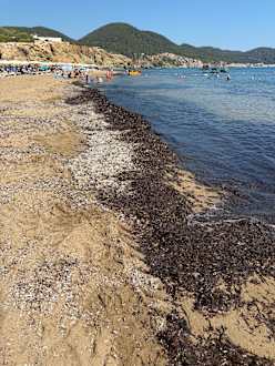Strand mit totem Seegras verunreinigt, Stadt kümmert sich schlecht darum offensichtlich.