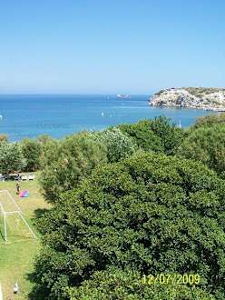Blick über den Garten zum Meer