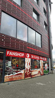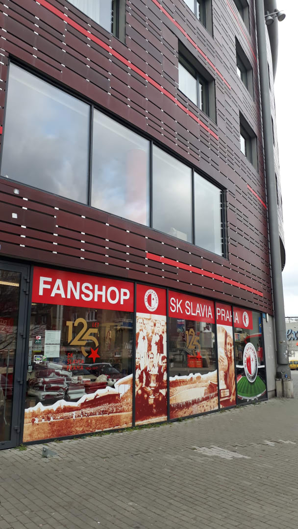 Slavia-Prag-Fanshop direkt neben dem Hoteleingang