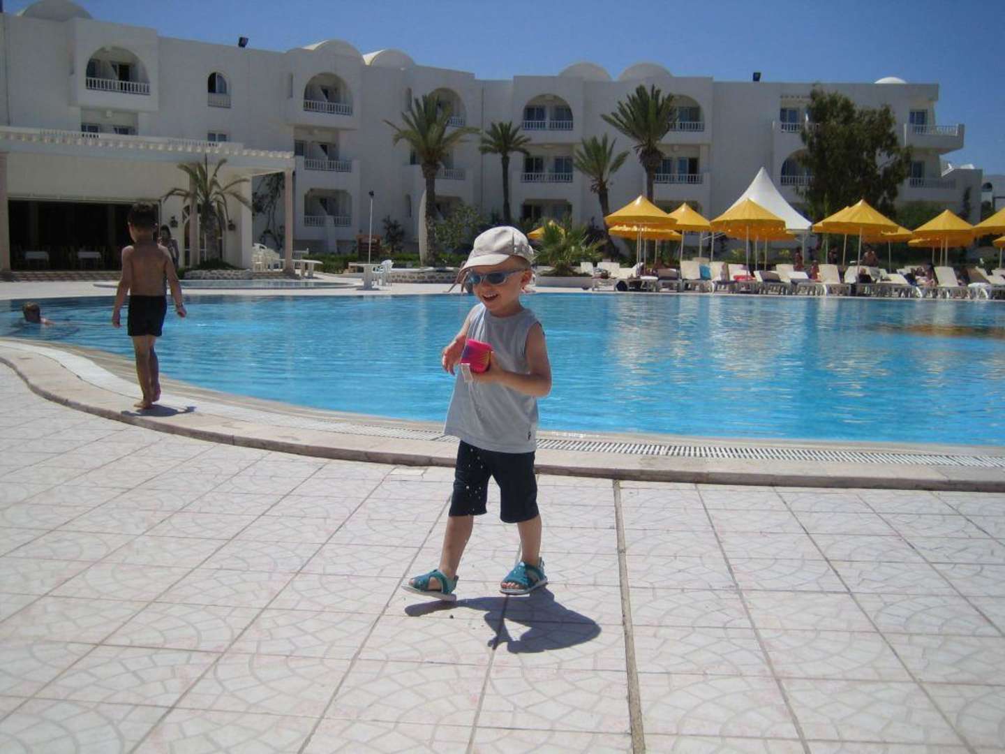 Unser Sohn Christopher vor dem Pool, Hotel Isis, Djerba !!!
