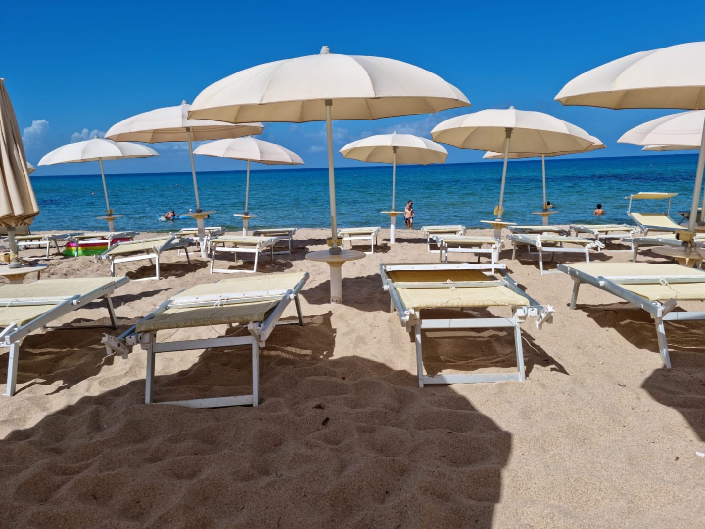 Jedes Zimmer verfügt über einen nummerierten Schirm und zwei Liegen