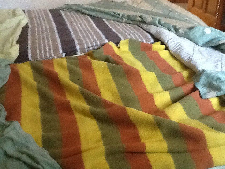 Die Bettwäsche und Decken verfärbt und eklig