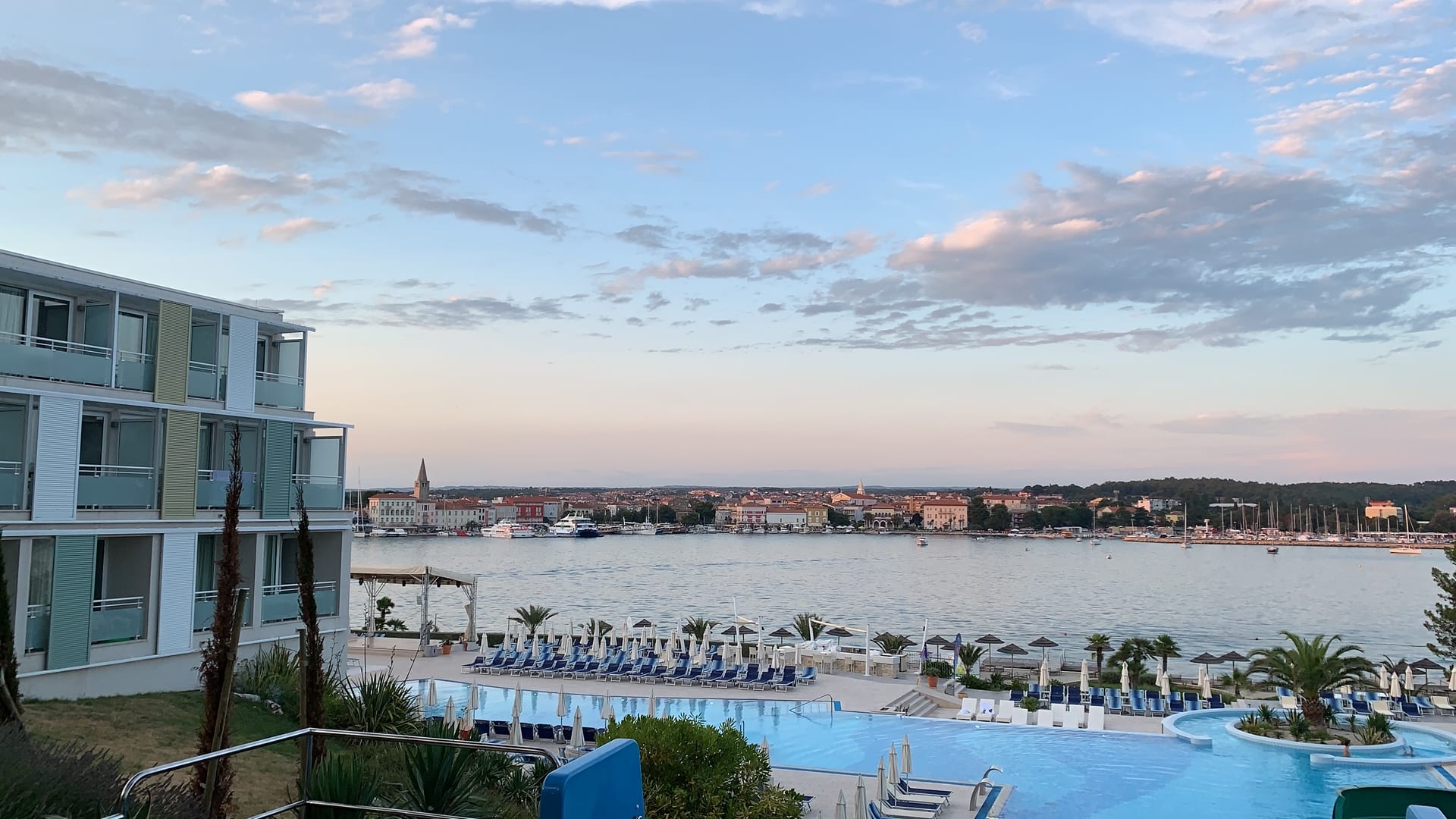Blick von oberhalb des Pools auf Porec