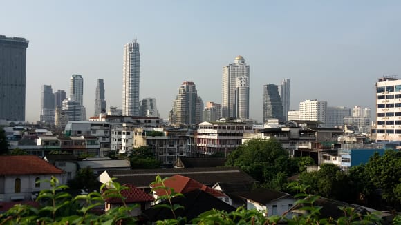 Ausblickvon der Dachterrasse des Restaurants auf das Hangover Hotel (dort wurde Hangover gedreht) mit der Kuppel