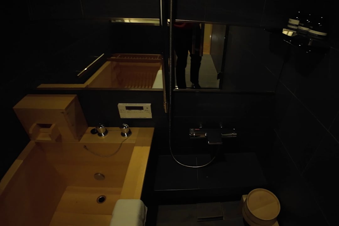 Bad mit Holzbadewanne und (Steh-)dusche