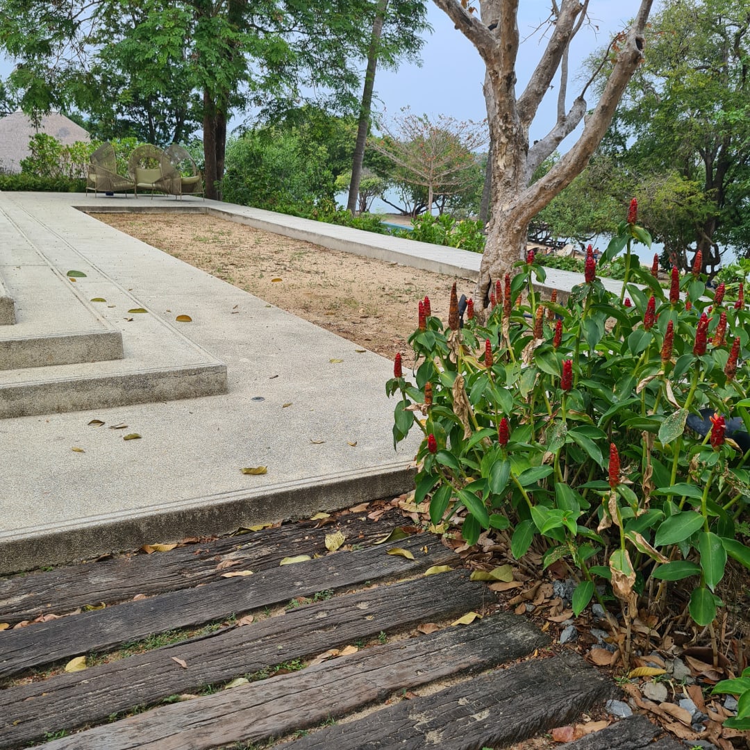 Terrasse und einziger Weg zum Strand