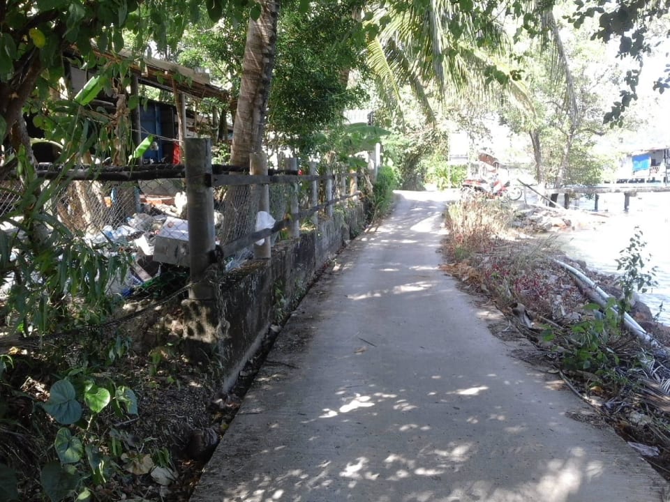 Zugang zum Hauptgebäude an Müllbergen vorbei