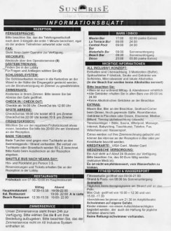 Hier das Infoblatt, das man im Hotel auf Anfrage bekommt