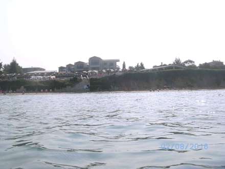 Das Hotel vom Meer aus gesehen