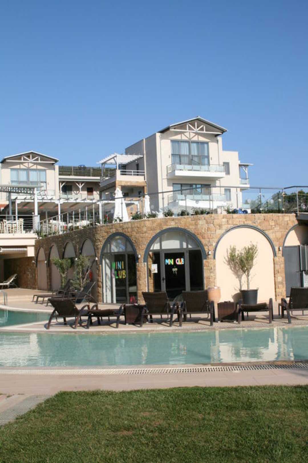 Pool mit Miniclub und WohngebäudeDer 'untere' Pool mit Miniclub im Hintergrund (große Fenster) und Wohngebäude am Hauptpool.