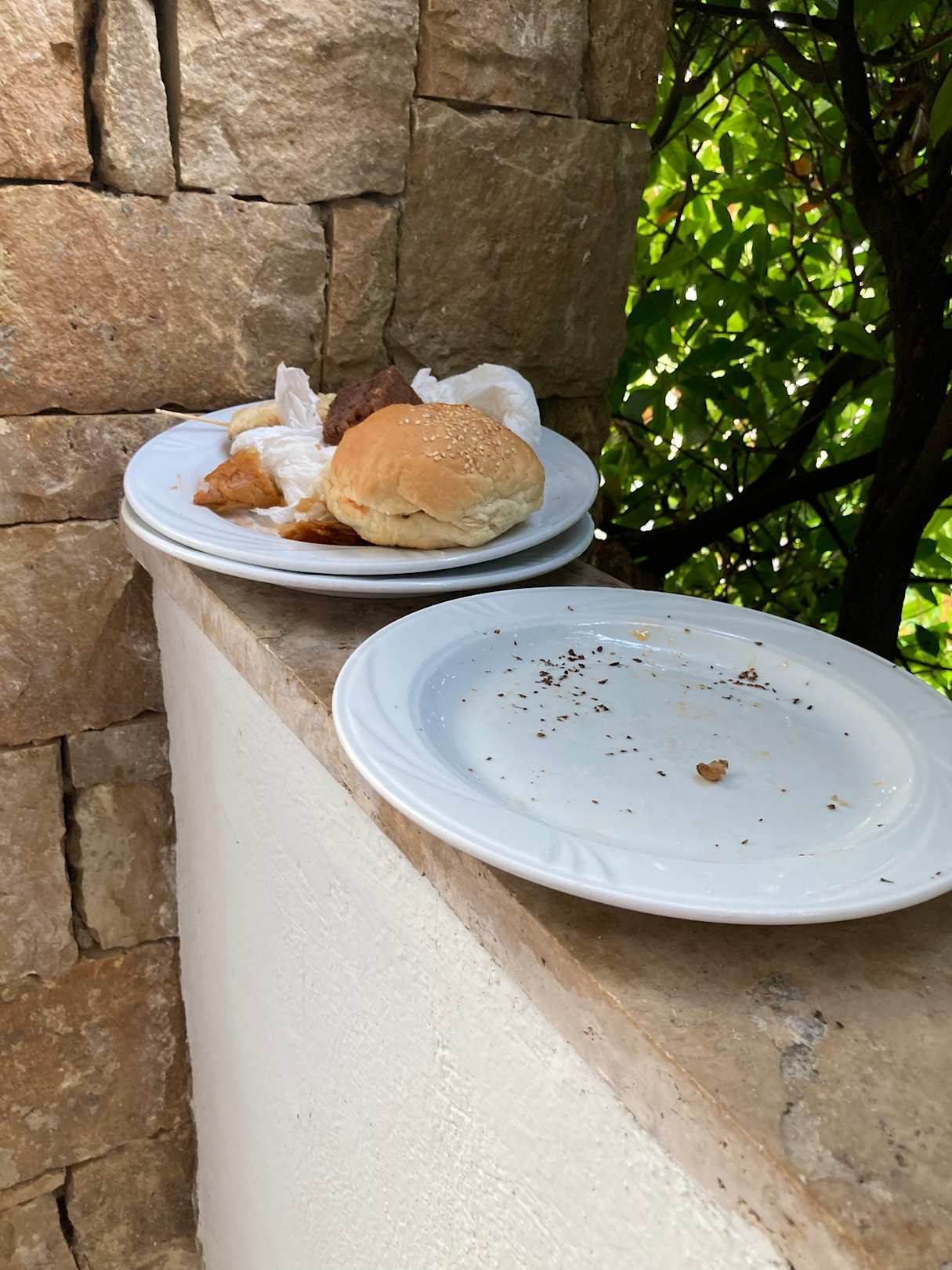 GartenanlageGäste haben ihre Teller und Gläser irgendwo immer abgestellt. Teils standen die bis zum nächsten morgen noch dort.