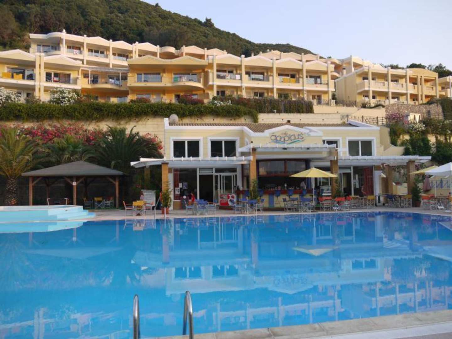 Blick auf den Pool und Bar