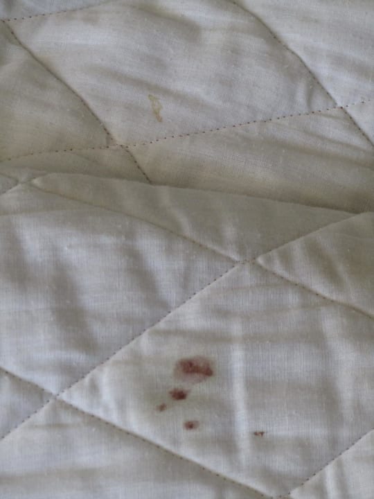 Unbekannte Flecken auf der TagesdeckeWir haben Sie am ersten Tag in die Ecke verbannt und nicht mehr angefasst. Ekelig