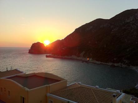 Blick vom Balkon bei Sonnenuntergang auf die BuchtBlick vom Balkon bei Sonnenuntergang auf die Bucht