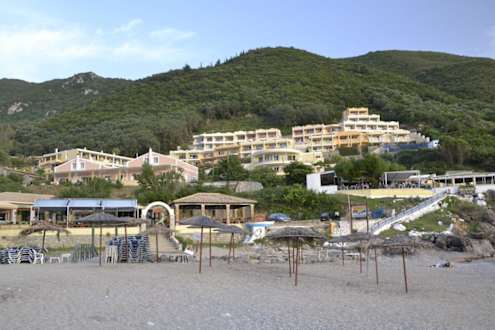 Blick vom Strand hoch zum Hotel
