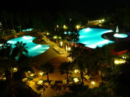 Die beleuchtete Poolanlage um halb 12 nachts nach der Animationsshow