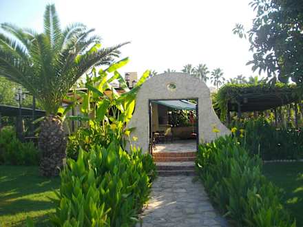 Vom Strand aus gesehen der Eingang zur Strandbar