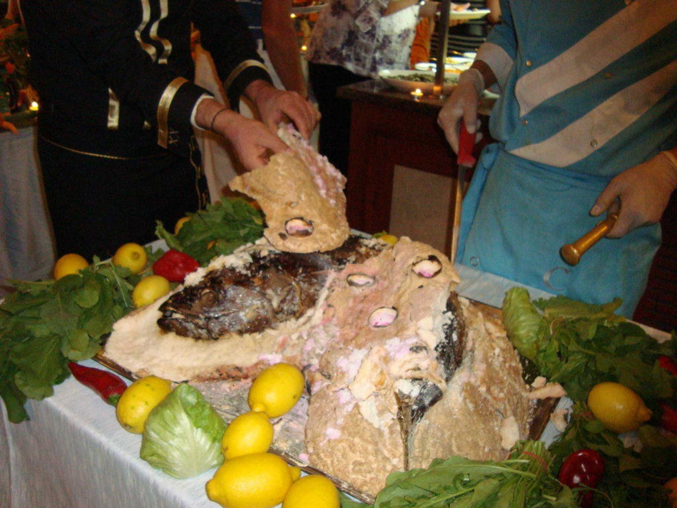 Thunfisch mit Salzkruste  Iz Flower Side Beach Hotel