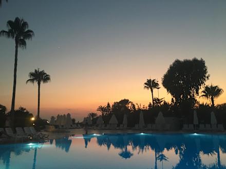 Abenddämmerung über der Poolanlage