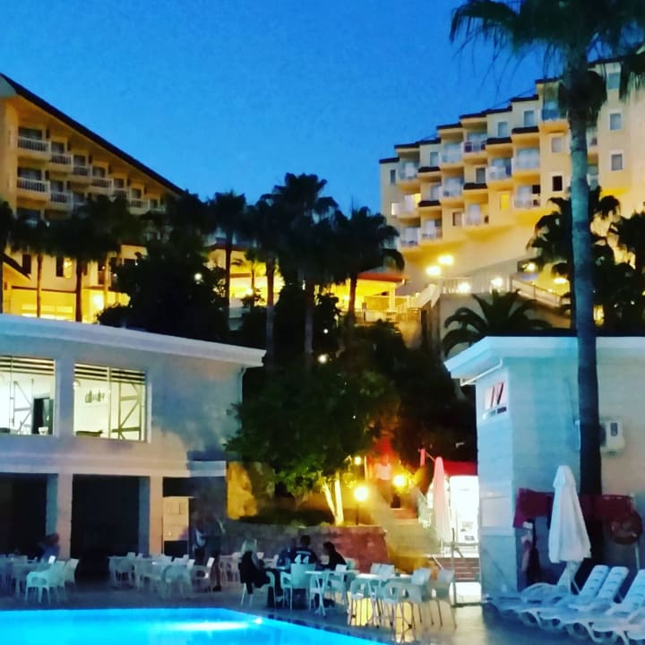Blick vom Pool zum Hotel