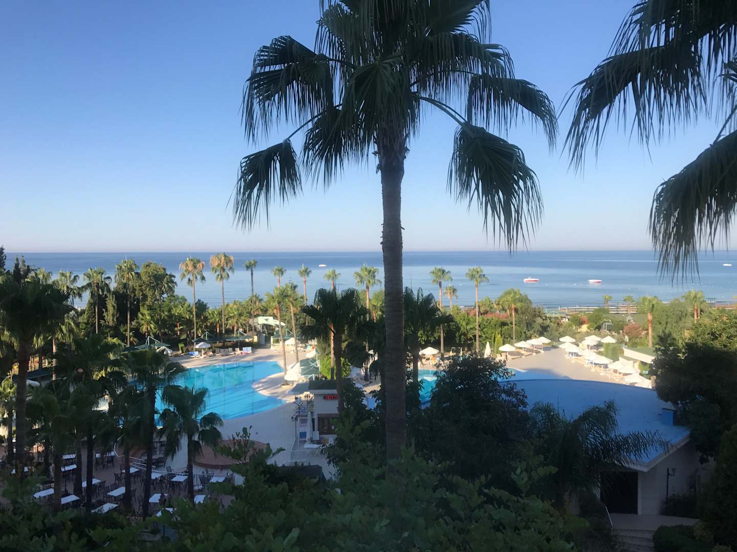 Aussicht auf Pool und Strand