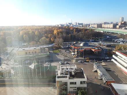Ausblick auf Parkplatz vor dem Hotel, Restaurant vor dem Hotel, Supermarkt vor dem Hotel, direkt dahinter ist die Metrostation Partisanskaya (ca. 15-20 Fahrt bis Zentrum, Roter Platz)
