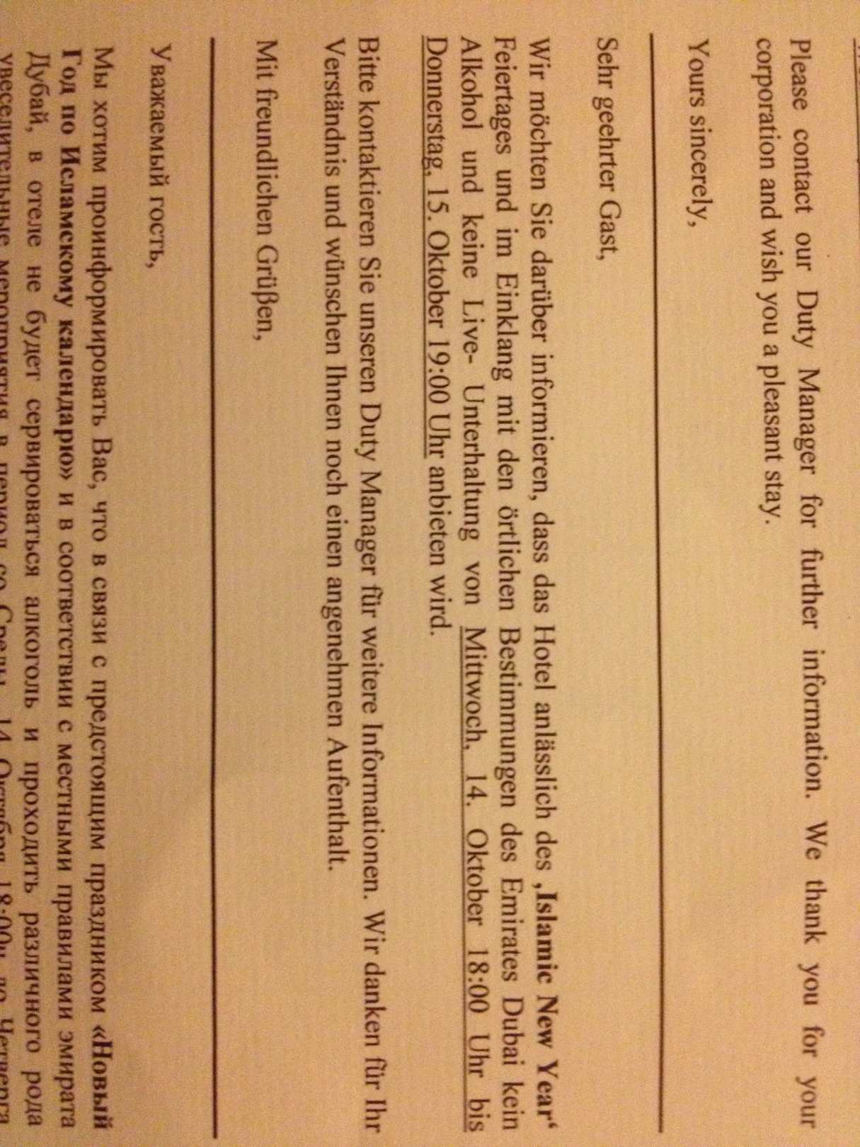 Kein Alkohol am Feiertag JA Beach Hotel