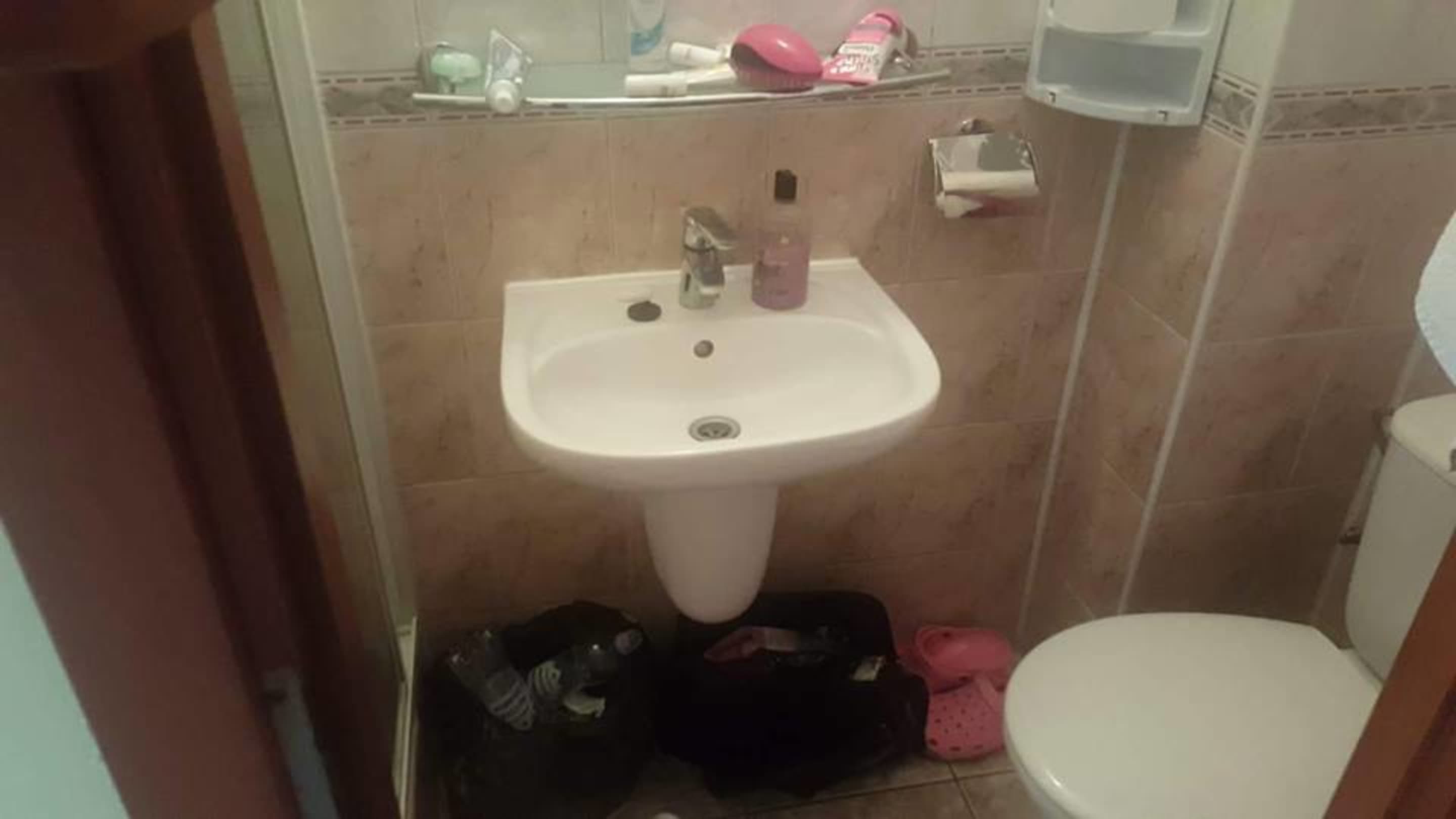 so kleine Bad habe nicht gesehen,habe schon Probleme mich dort Bewegen