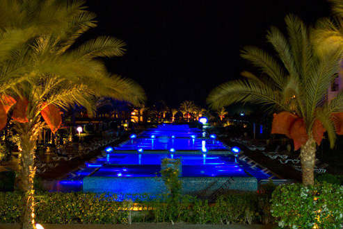 Basen przy pokojach nocą