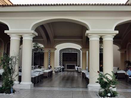 Überdachter Terrassenbereich der Lobbybar