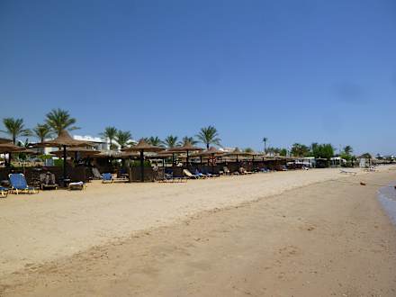 Hoteleigene Liegen und Sonnenschirme