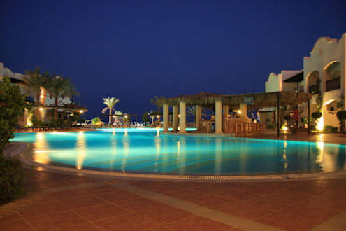Poolanlage bei Nacht