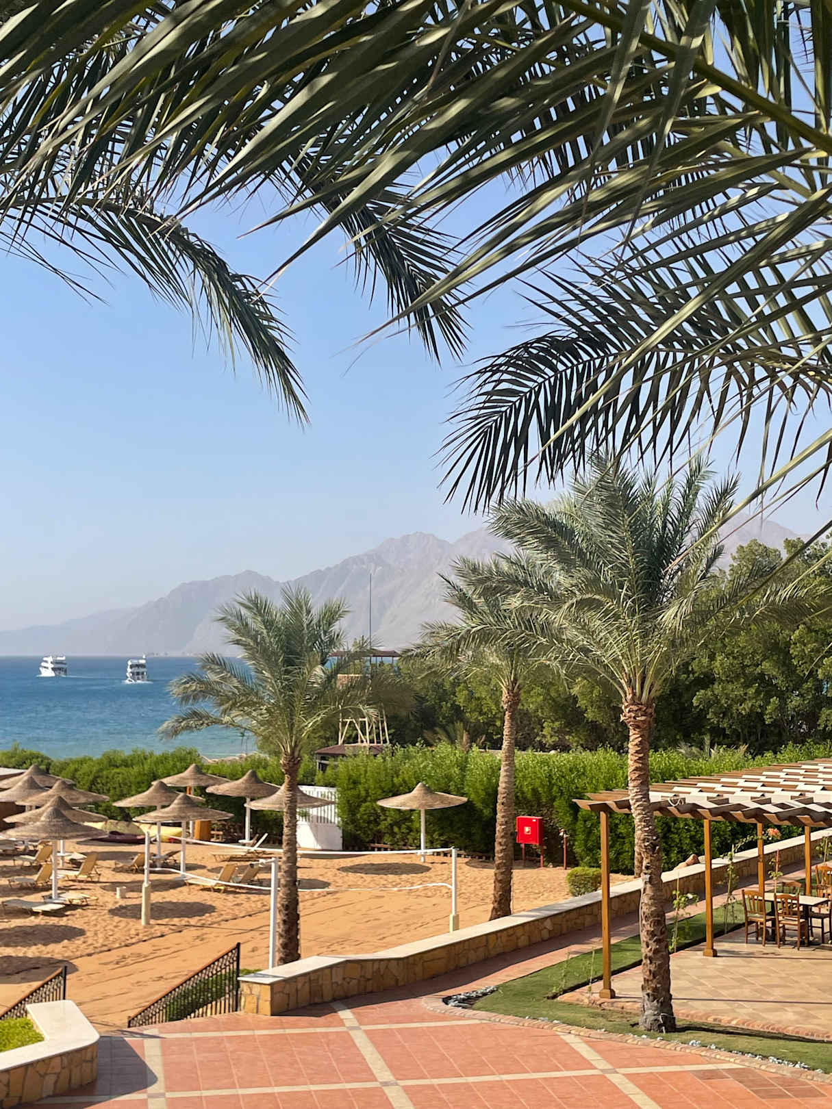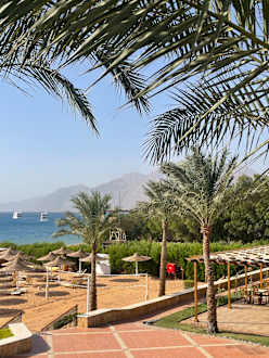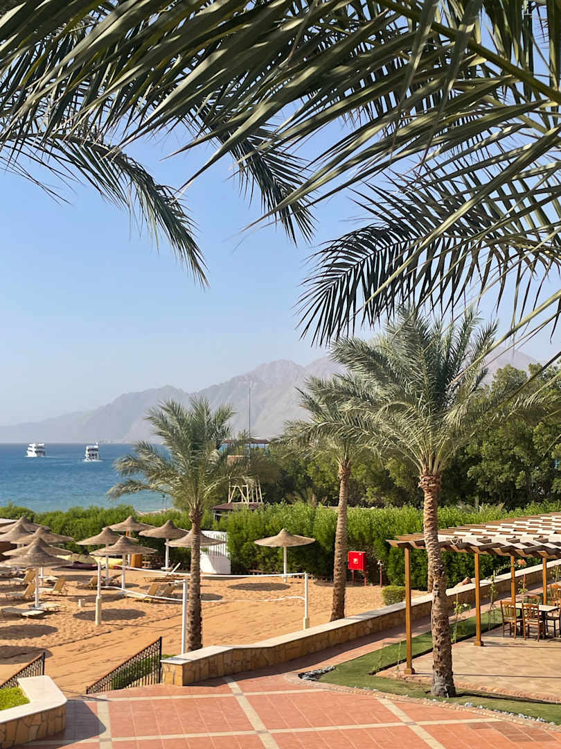 Blick auf die Berge Dahabs und einem kleinen Teil des Strands