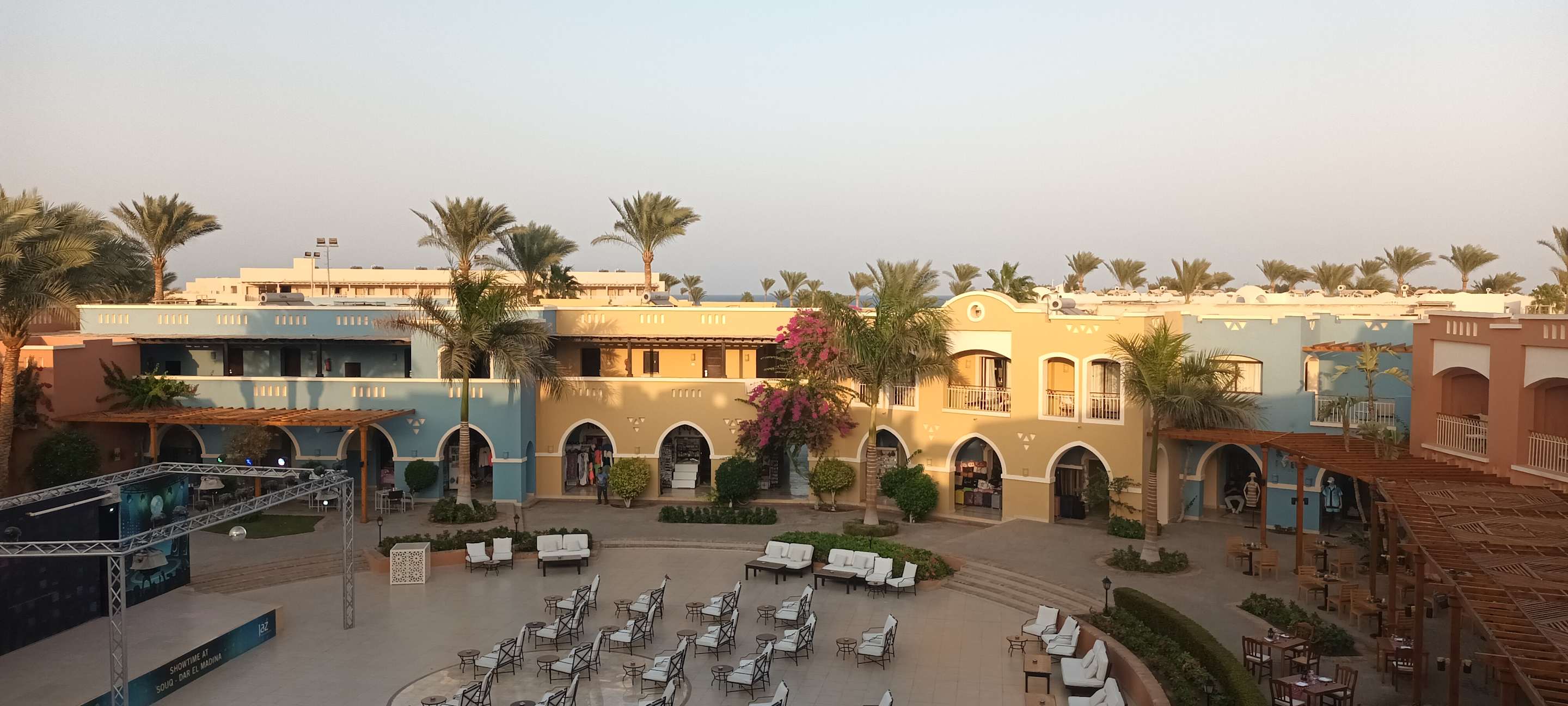 Sport & FreizeitBlick auf den Soukh mit der Bühne für die Abendanimation für alle Hotels und den a la carte-Restaurants Ninos, Sofra, Momo