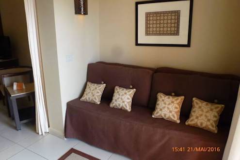 Couch gegenüber vom kleinen Bett