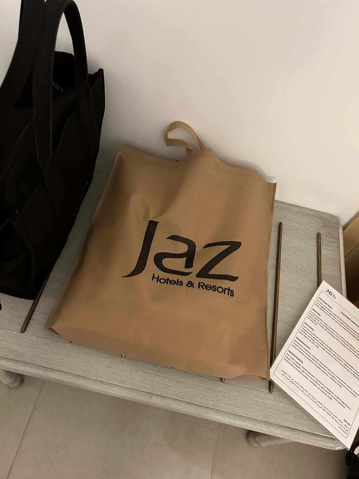 ZimmerEs gab eine Strandtasche mit Handtüchern. Diese hat man Abends an die Tür gestellt & man hat frische bekommen.