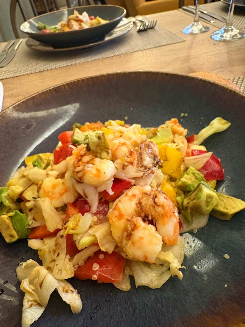A la Carte Restaurant Salat mit Garnelen und Avocado