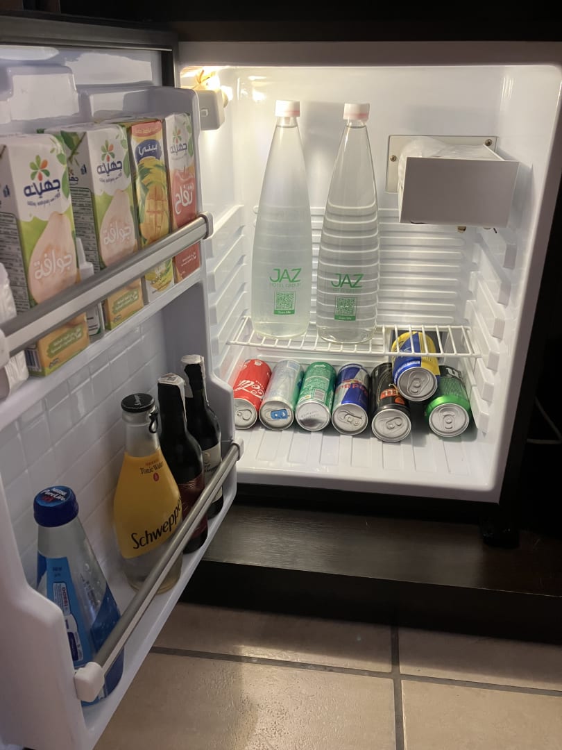 Gefüllte Minibar, aber nur Wasser all inclusive, alles andere gegen Aufpreis.