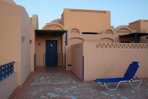 Makadi Oasis, Terrasseunsere große Gemeinschaftsterasse und im Hintergrund unsere Zimmertür