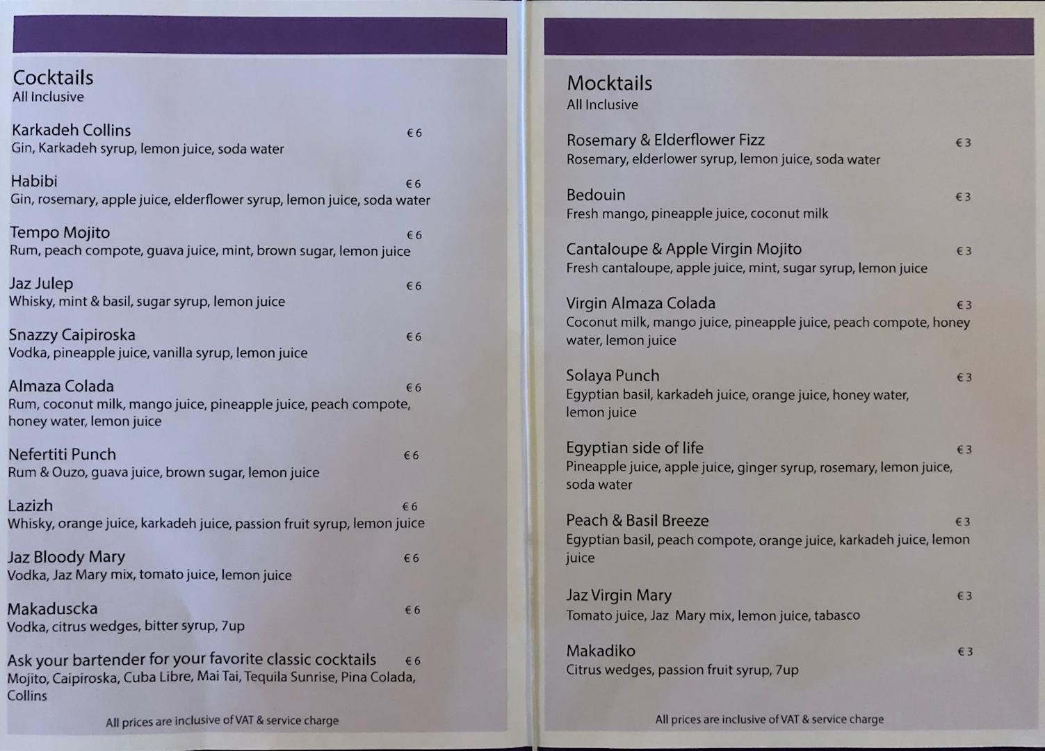 Cocktailkarte Ibrahim an der Lobbybar macht diese Cocktails am besten!