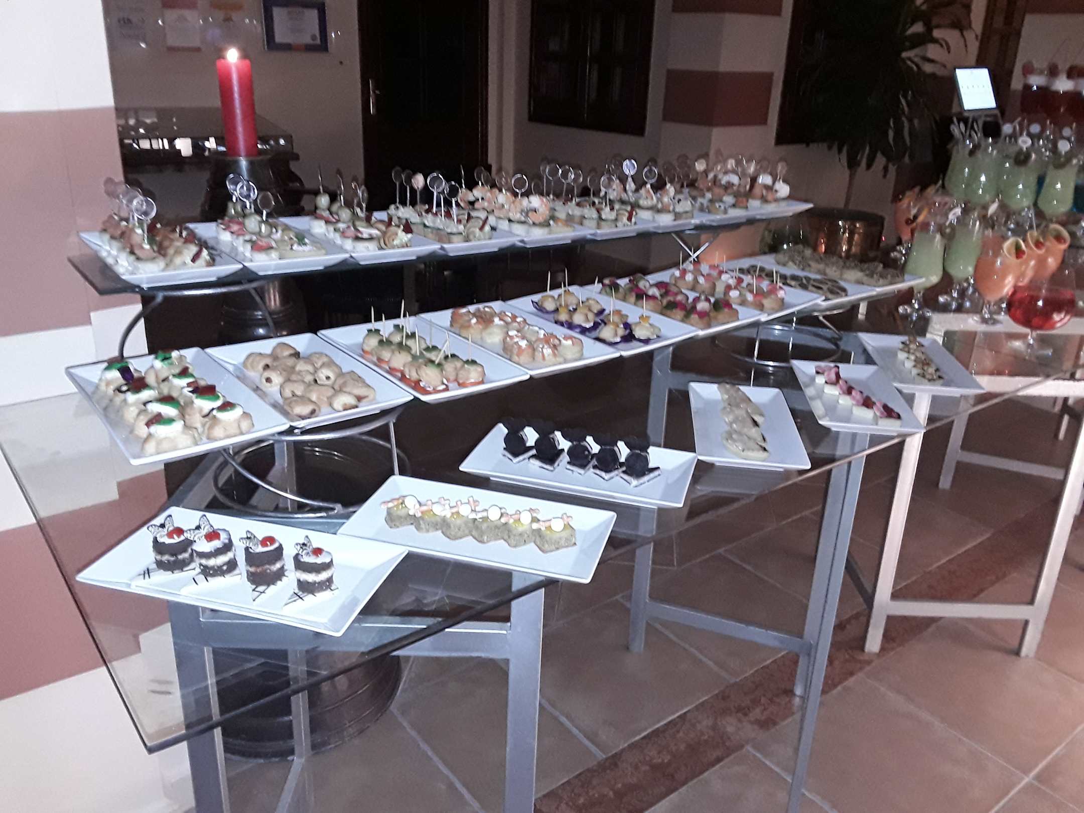 в рецепшеп.встречали нас на рождество.коктели и закуска.