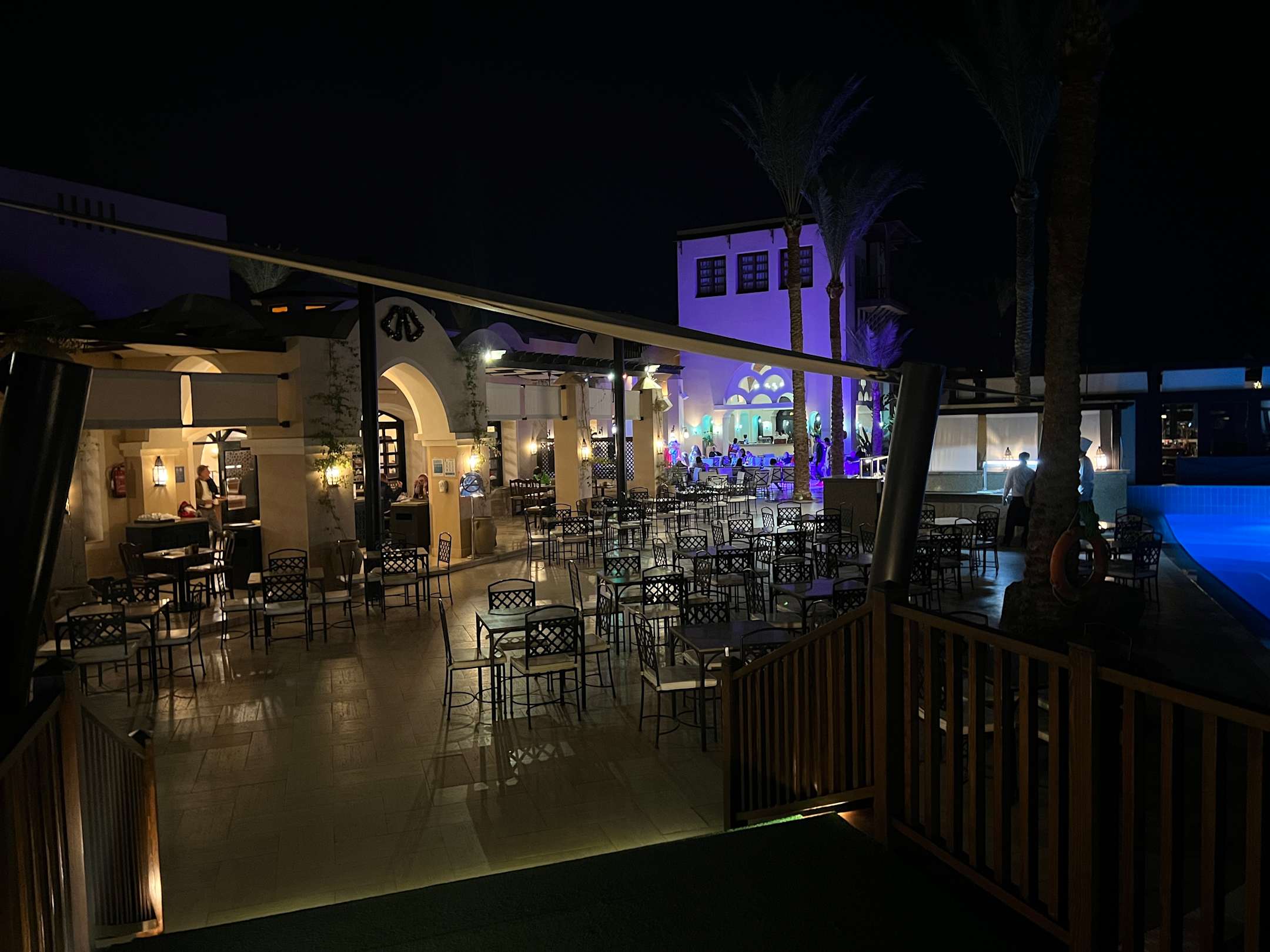 Nachtansicht des Hauptgebäudes mit Restaurant