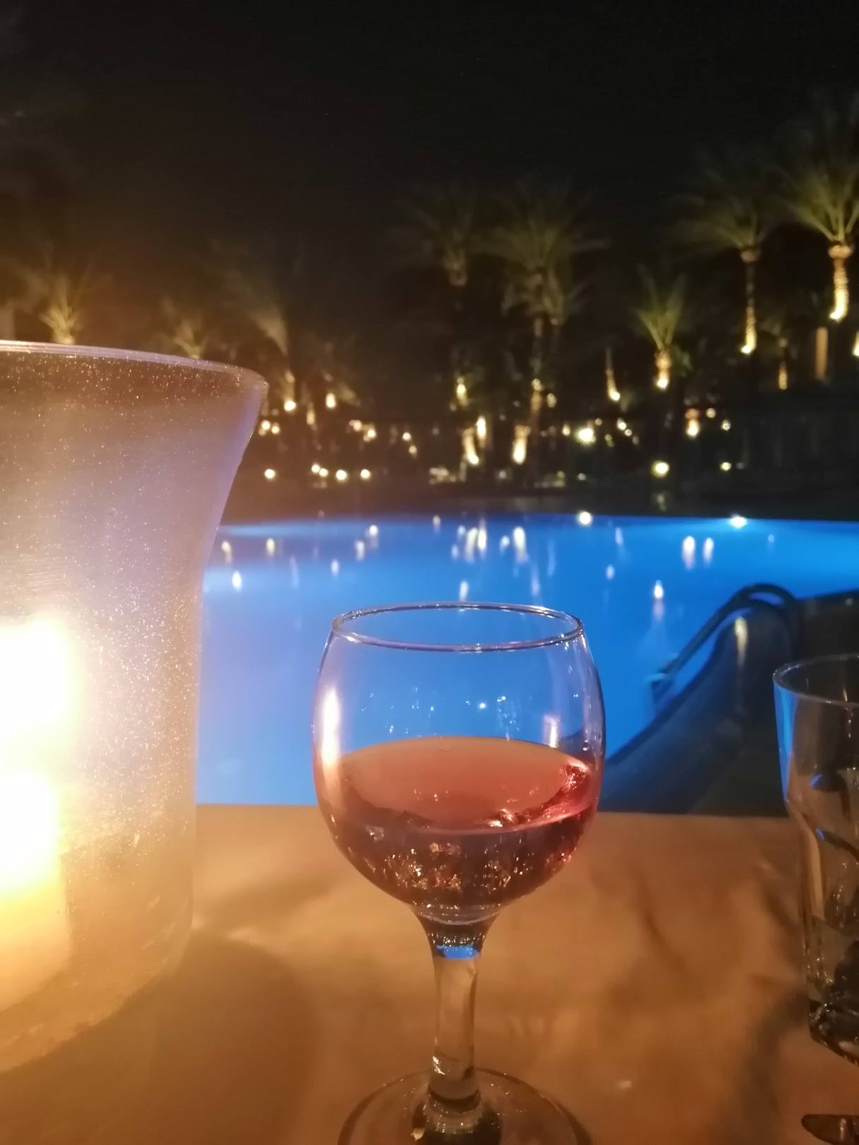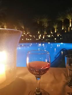 Abends beim Essen am Pool