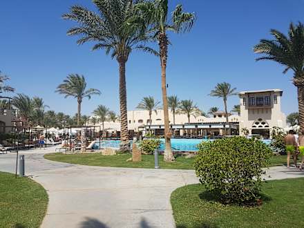 Blick vom Strand Richtung Pool