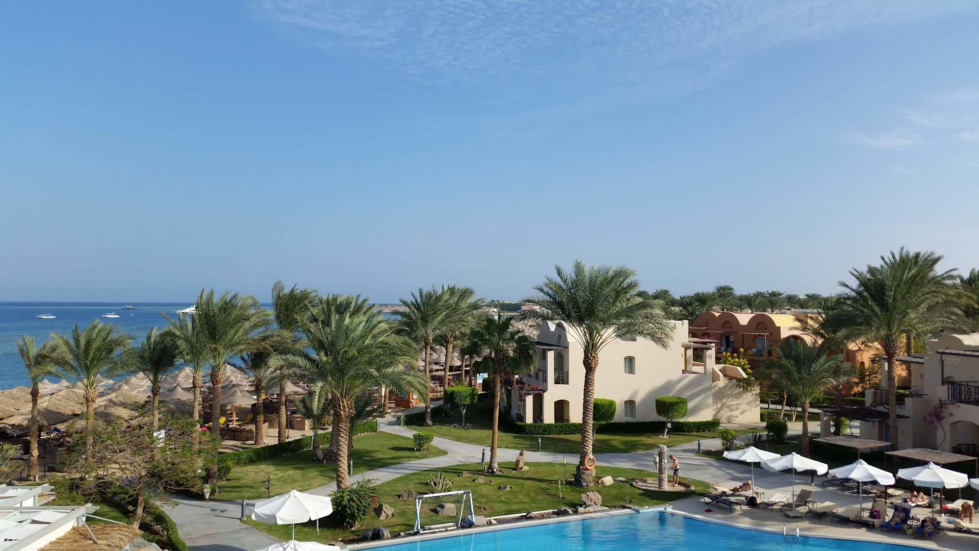 Ausblick über den Hotelstrand und die Bay