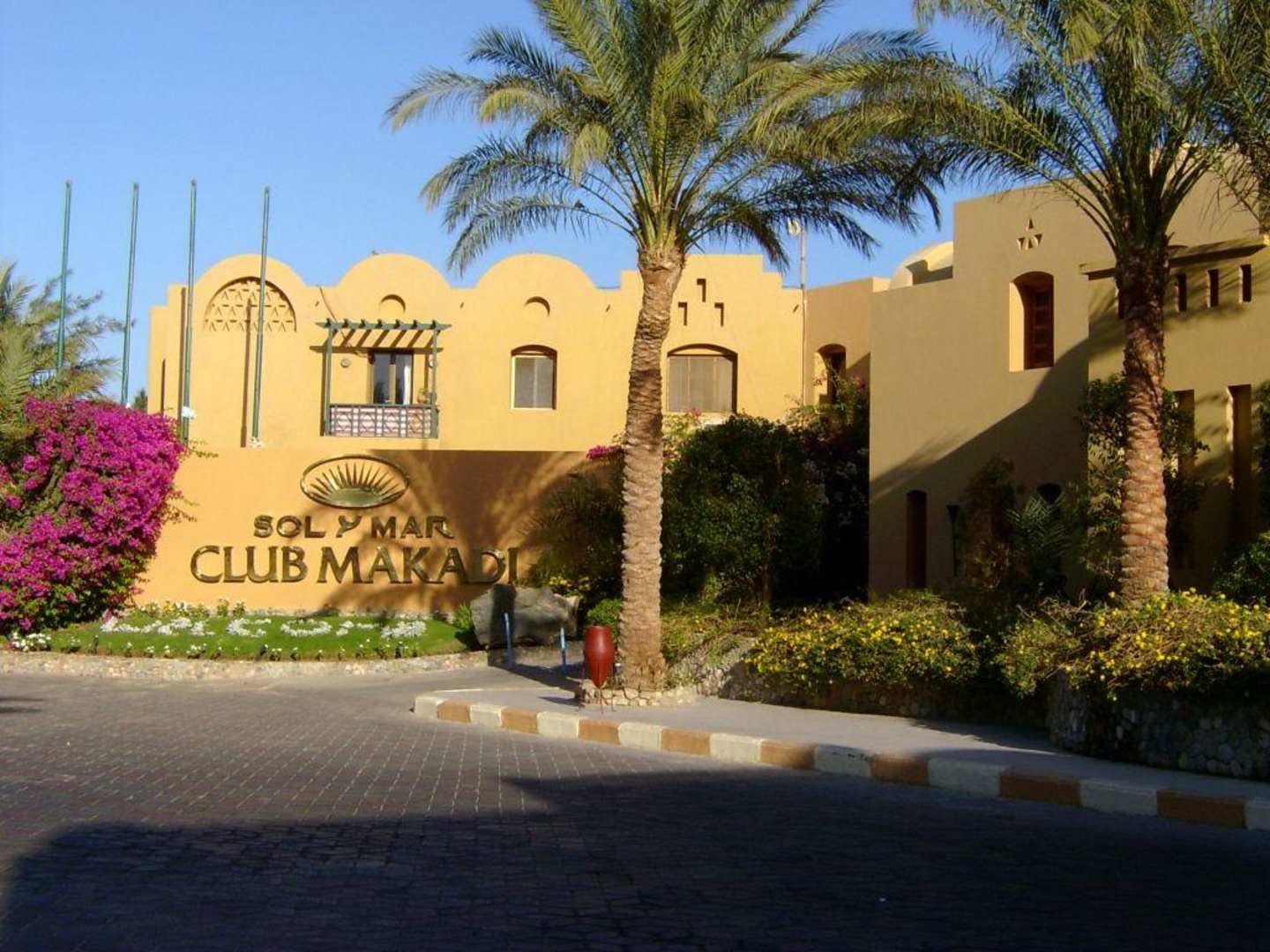 Eingangsbereich des 1-2-Fly Fun Club Makadi von außen.